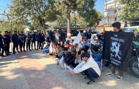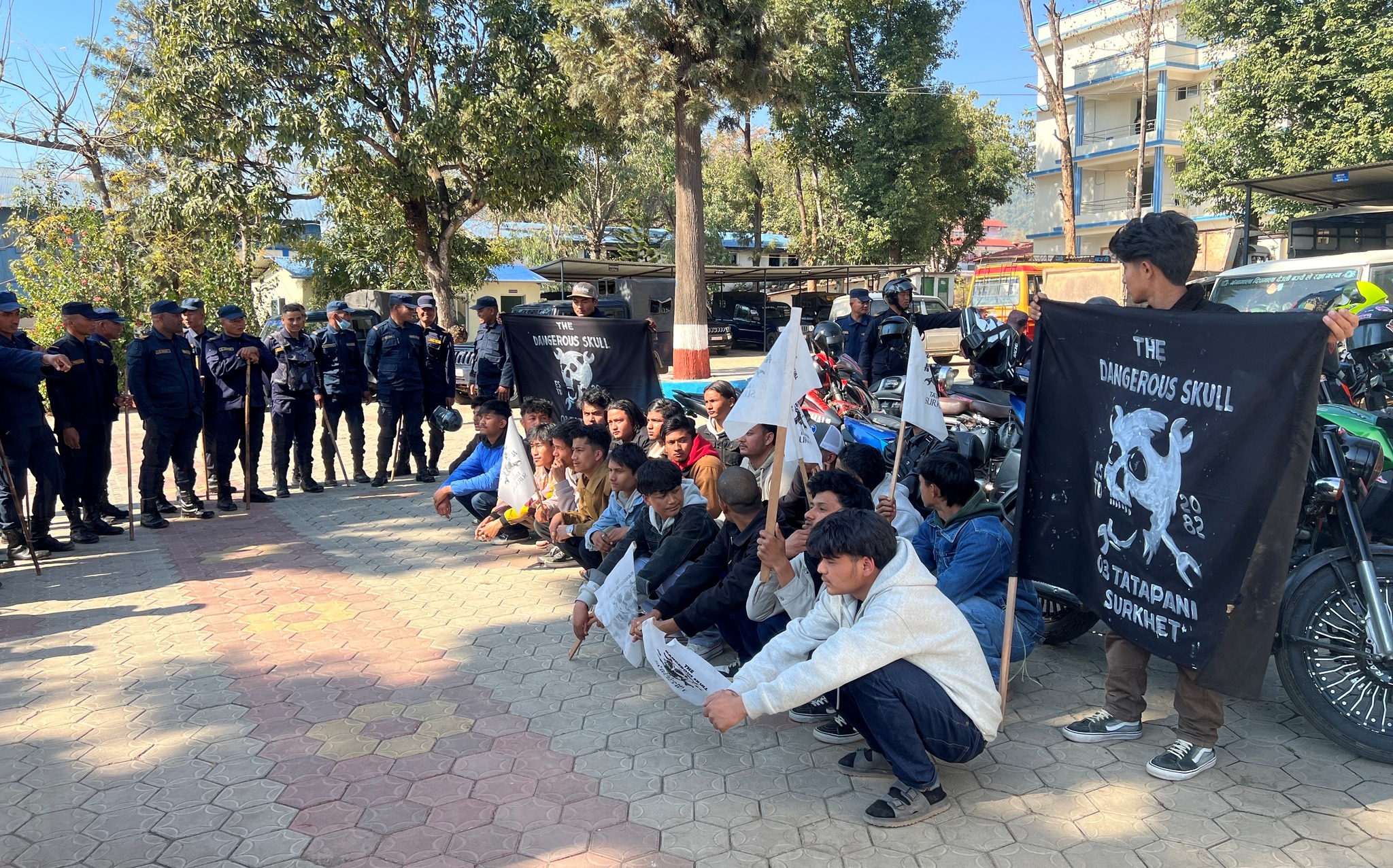 सुर्खेत । सुर्खेत प्रहरीले निर्वाचन शान्ति सुरक्षालाई खलल पु¥याउन खोज्ने २५ जनालाई पक्राउ गरेको छ । मोटरसाईकलमा कालो रङको झण्डासहित ¥याली निकालेर निर्वाचनमा शान्ती सुरक्षा खलल पु¥याउन खोज्ने द डेन्जरस स्कुल ‘THE DANGEROUS SKULL’ समूहका २५ जनालाई पक्राउ गरेको हो । आज दिउँसो जिल्ला सदरमुकाम वीरेन्द्रनगर–११, धुलियाबिट नजिकै तिनकुने चोकहुँदै…