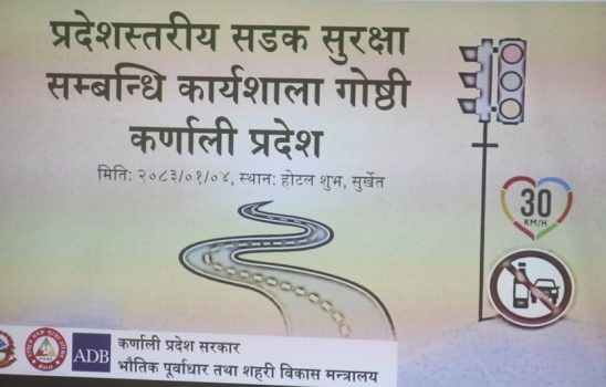 सुर्खेत । सवारी दुर्घटना न्यूनीकरण र सुरक्षित सडक पूर्वाधार निर्माण गर्ने उद्देश्यका सुर्खेतको वीरेन्द्रनगरमा प्रदेशस्तरीय सडक सुरक्षा सम्बन्धि कार्यशाला गोष्ठी’ शुरु भएको छ । कर्णाली प्रदेश भौतिक पूर्वाधार तथा शहरी विकास मन्त्रालयले प्रदेशमा बढ्दो सडक दुर्घटना न्यूनीकरण गर्ने उद्देश्यले कार्यशाला आयोजना गरेको हो । उक्त कार्यशालामा सडक पूर्वाधारको सुरक्षा र…