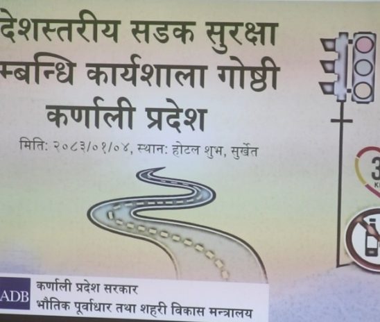सुर्खेत । सवारी दुर्घटना न्यूनीकरण र सुरक्षित सडक पूर्वाधार निर्माण गर्ने उद्देश्यका सुर्खेतको वीरेन्द्रनगरमा प्रदेशस्तरीय सडक सुरक्षा सम्बन्धि कार्यशाला गोष्ठी’ शुरु भएको छ । कर्णाली प्रदेश भौतिक पूर्वाधार तथा शहरी विकास मन्त्रालयले प्रदेशमा बढ्दो सडक दुर्घटना न्यूनीकरण गर्ने उद्देश्यले कार्यशाला…