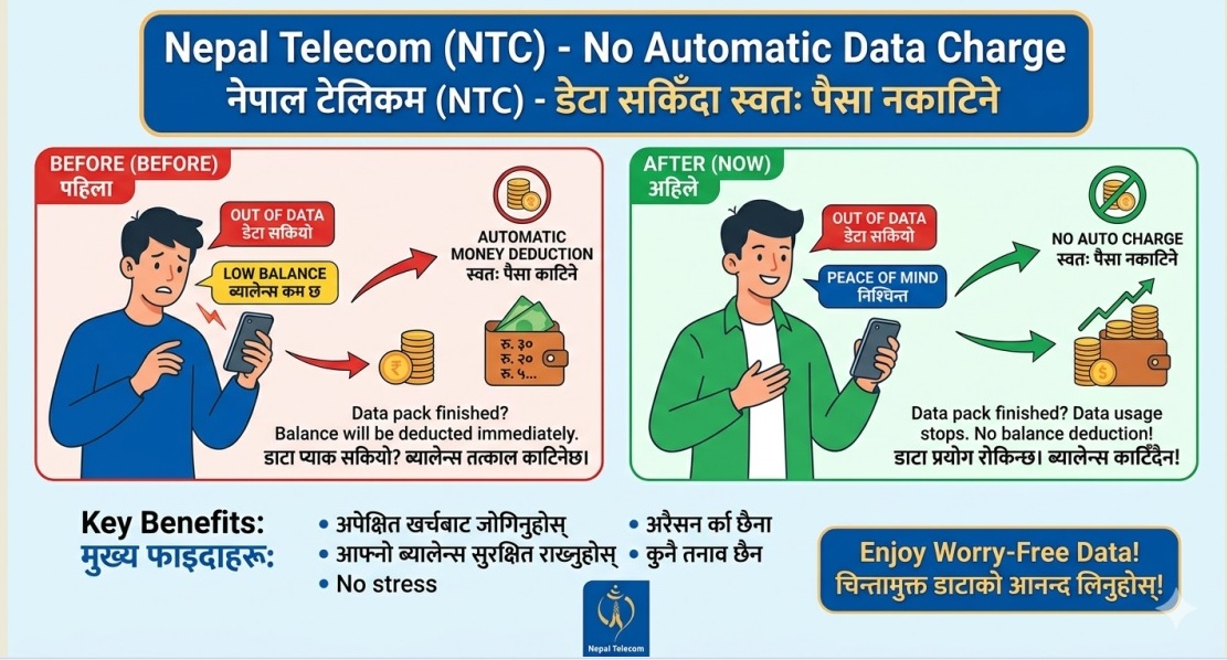 अब टेलिकमको डाटा सकिँदा स्वतः पैसा नकाटिने